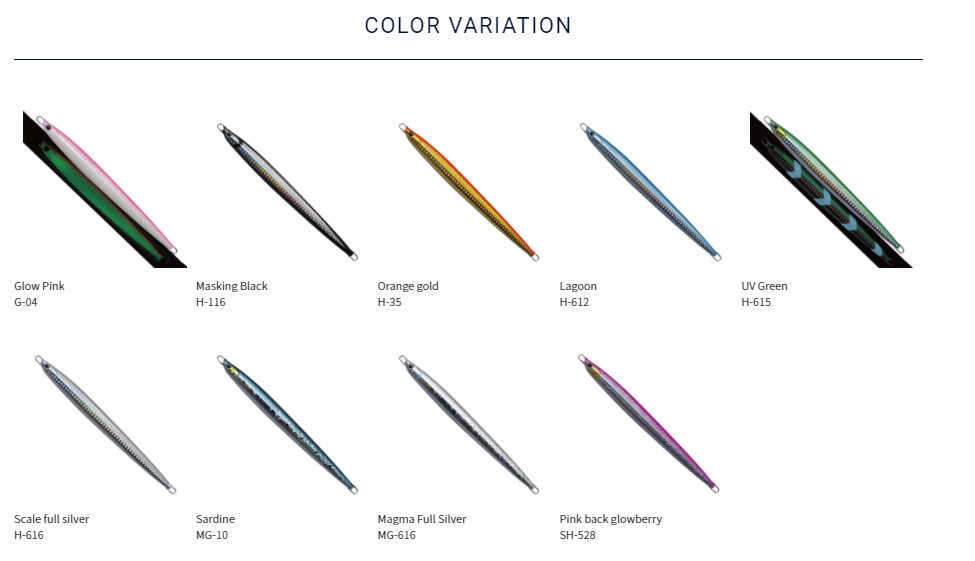Jigaro’s 4th Z light metal model “Superslide” has been born in 2020 and has achieved overwhelming slide actions. As its name implies, the Jigaro Super Slide is a model created to achieve the highest slide in the series. The slide action has been obtained by the balance of the symmetrical body with the low sync rate of Z light metal. The center weight balance body, which pursues balance of flying distance and Jigaro action, demonstrates the action response of the highest peak in the series to rod work. By intentionally dropping the sink rate, we realize a slow fall that does not seem like a metal body. A small downward force means that all input power can be converted into an upward or lateral action. A jig that allows you to switch on a low activity target and keep the jig in view. It proposes new tactics to the world of shore jigging and jigging.