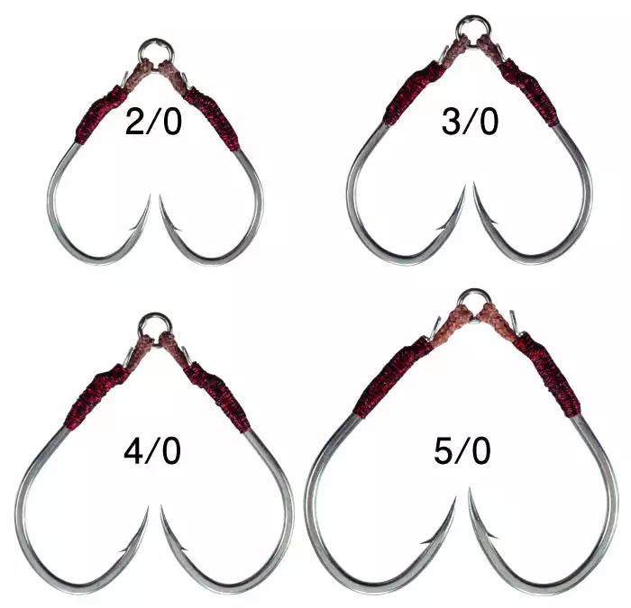 From the success of the original P-FLEX in the single hook models, a new double assist has been created by demand of anglers. The twin assist specification was designed for increased hook up rates over a single assist with the ability to also balance lures that require more weight where a single hook didn’t suffice. The thicker gauge hook on these hooks further increase weights of the hooks and provide tremendous strength. Suitable for shore jigging for kingfish, tuna and reef species.