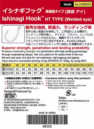 Hitena Ishinagi Welded Jigging Hook (HT Type – Welded eye)