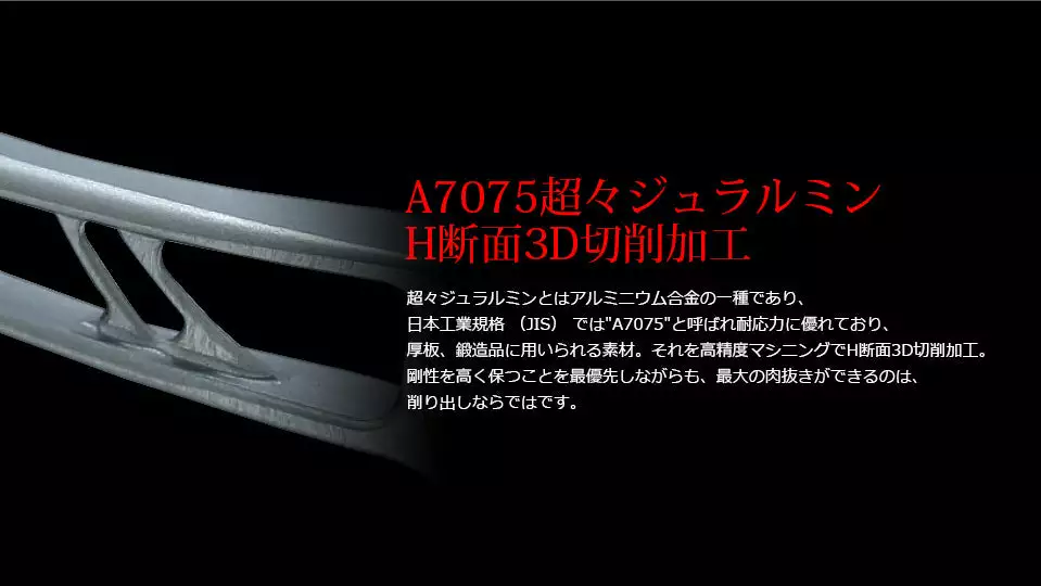 A newly designed plate of the handle shaft made from a A7075 duralumin material which is light in weight yet rigid and strong. The A7075 super duralumin block is machined with high previous for a clean and faultless cut with smooth edges which can withstand enormous amounts of pressure. The H-section are machine cut with precision cut to enforce high rigidity even with excessive use.