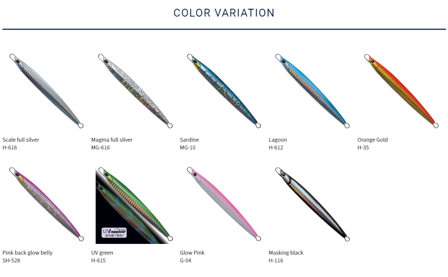 Jigaro Massive has been designed with a compact body that is downsized by about 22% compared to the total length of normal Jigaro. It has a excellent response to rod work and the slide action produced by it are the high-dimensionality of the Jigaro family. By achieving stable flight distance even under adverse wind conditions and tight control of tidal currents, it enables new tactics for the capture of fields that have been attacked until now. At the same time, a small silhouette becomes a trump card for a cunning target that exclusively consumes a small bait represented by sardines.