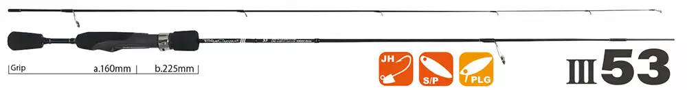 | 1610mm | 53g | 2pcs | MAX4.5g(JH0.1~4.5g) | PE 0.06~0.3 / NY・FC1~3lb | 91.3% |